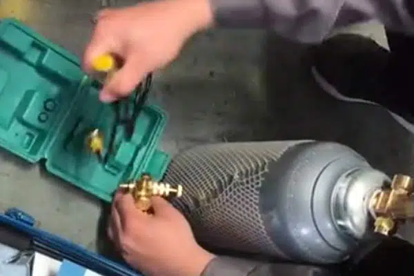 - When the three-way valve handle is turned clockwise, the pressure value in the cylinder will be show on the pressure gauge.