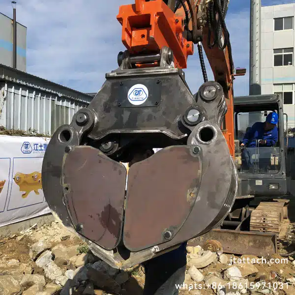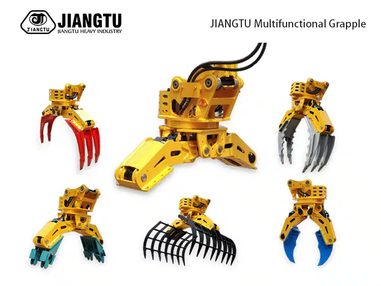 VARIOUS RANGE OF PRODUCTS MEET YOUR NEEDS One of the greatest strengths of JIANGTU is the wide supply scope: 360°Rotatory Grapple, Fixed Grapple, Quick Coupler, Hydraulic Plate Compactor, Buckets, Hydraulic thumb, Ripper, Breaker, etc. The end-users can rely on a really diversified range of products to meets their needs most efficiently and effectively.