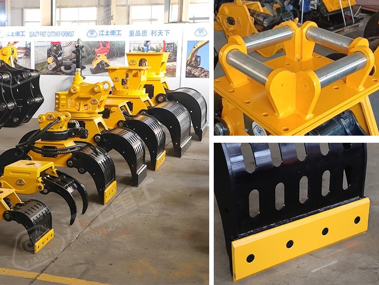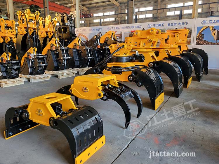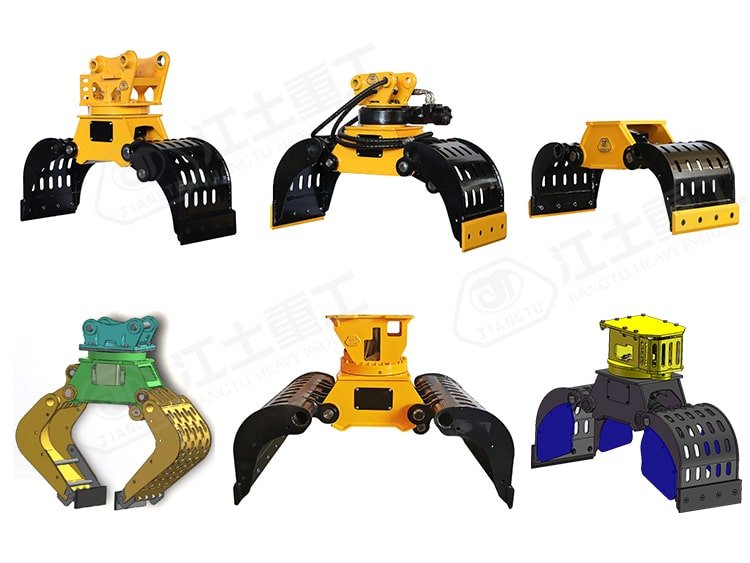 The excavator grapple also called excavator grab, is an attachment of the excavator, mainly used for loading and unloading miscellaneous wood, whole wood, sugar cane, cotton, reed, forage, and various other materials. Our JIANGTU hydraulic grapples’ claws can be customized suitable for grabbing stones, suitable for grabbing large objects such as stones, steel, scrap metal, and sundries.